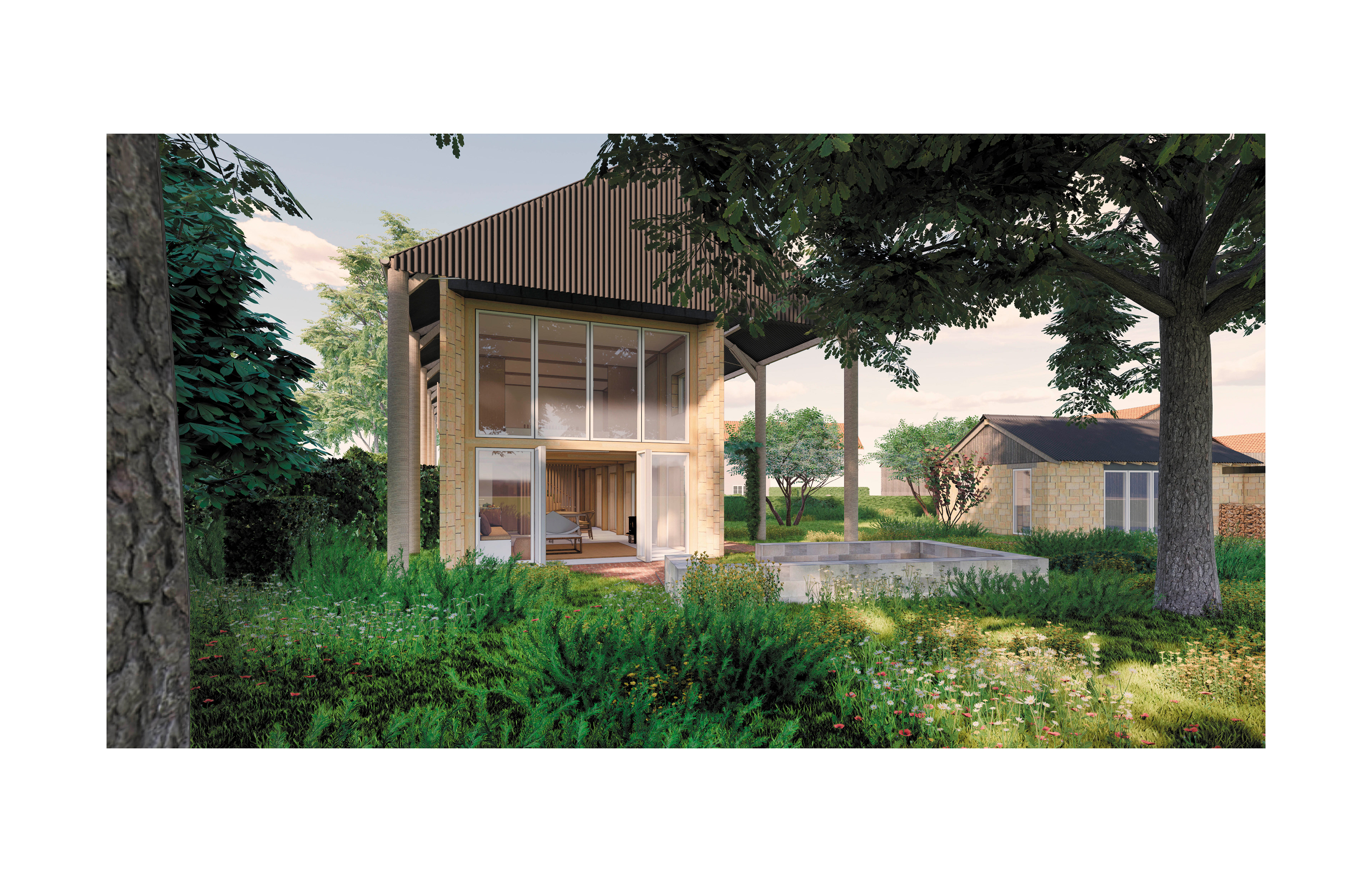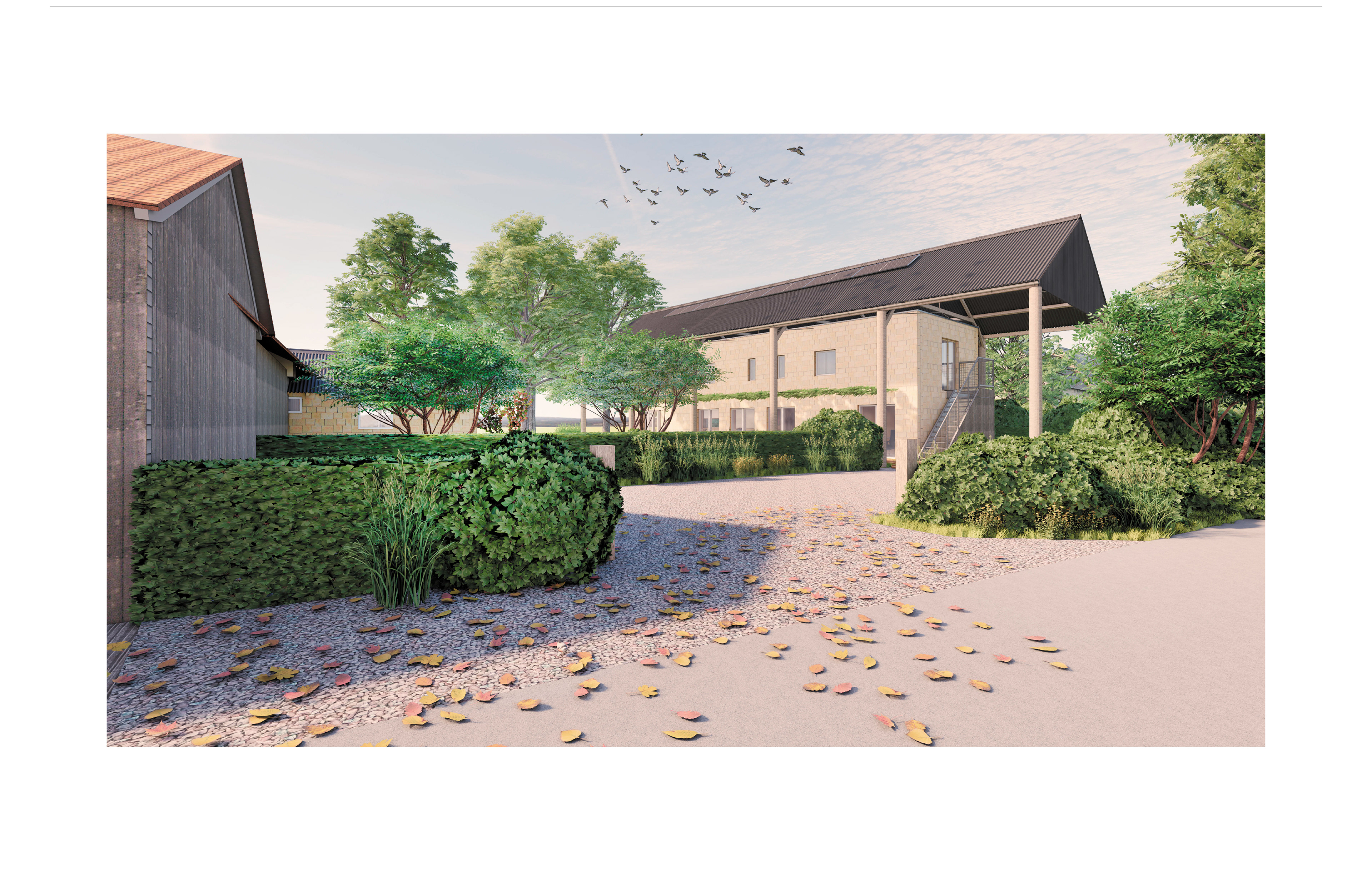 A new house in the countryside built beneath a barn roof, using East Suffolk Councils' cluster policy. The house will be built with breathable, carbon positive hemp blocks using no plastic insulation or membranes.