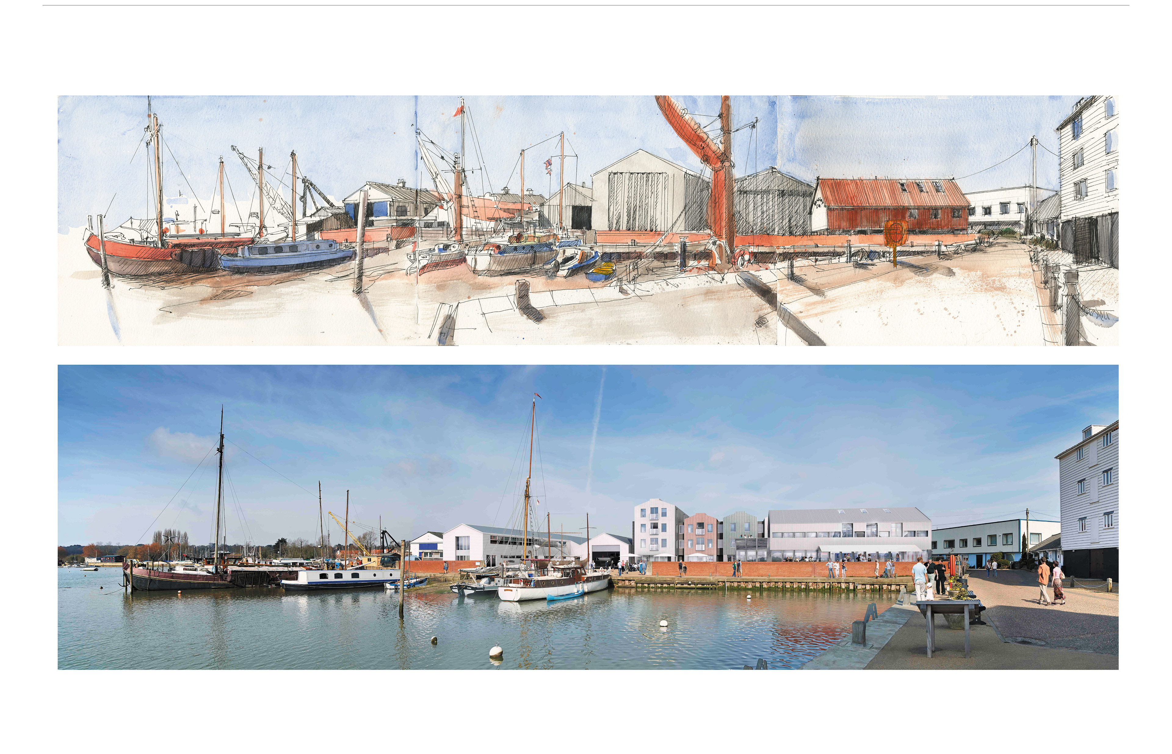 I worked with Paul Weston to develop this important mixed use building on the River Deben. The planning officers’ report said that, "the design would enhance the setting of the listed buildings by complementing and respecting their intrinsic form and appearance (without slavishly copying them)“.