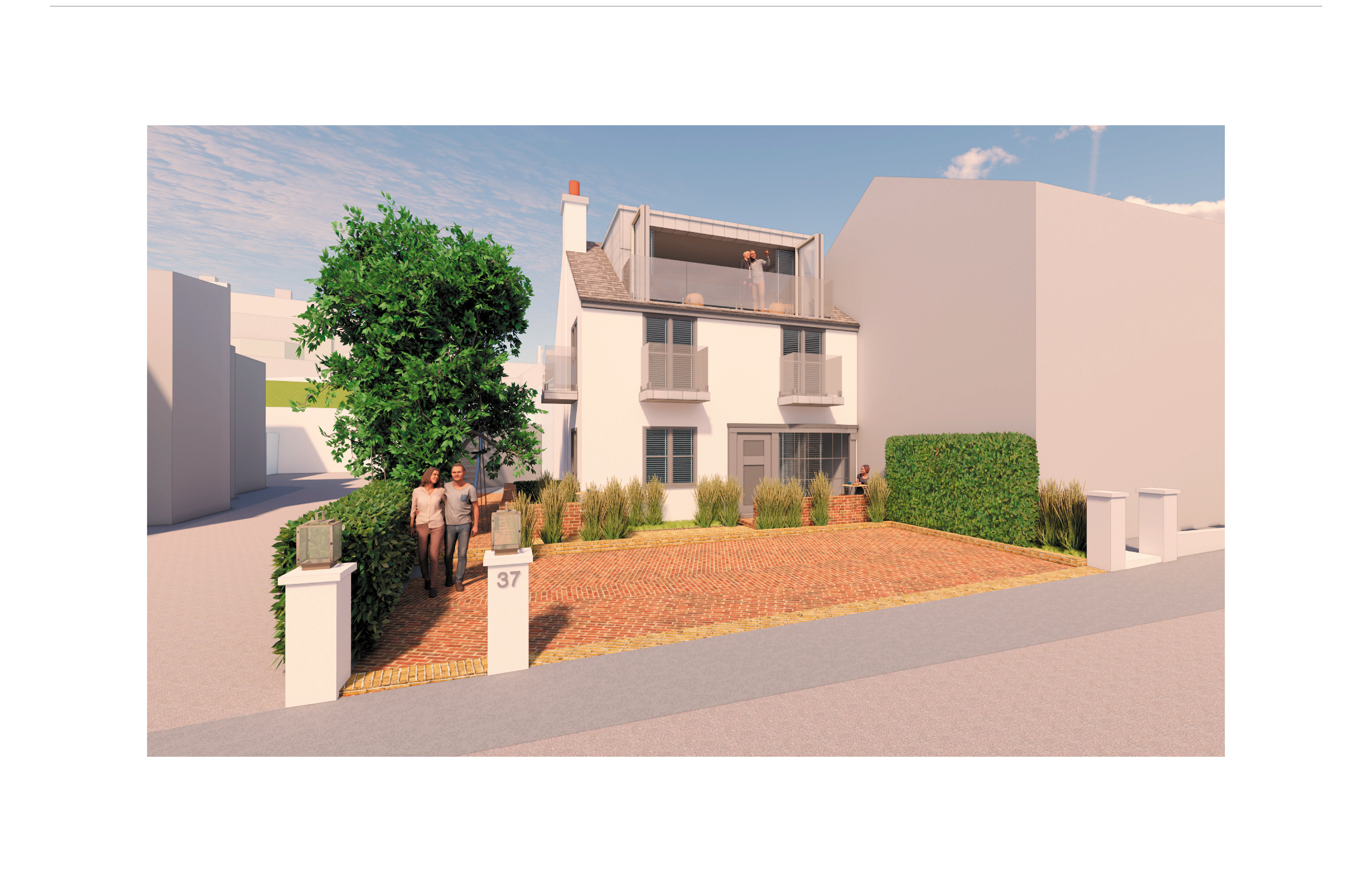 A proposal to return an office to residential use with a new roof level within a broad dormer that has views of the sea.